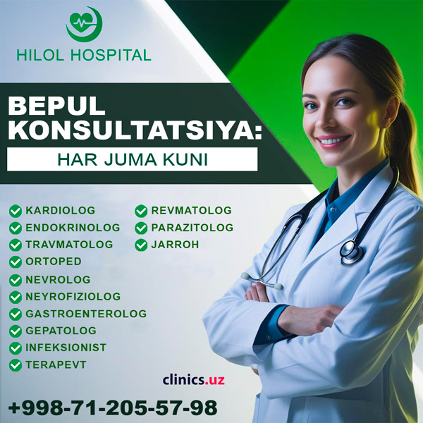 BEPUL KONSULTATSIYALA Hilol Hospital mutaxassislaridan — har juma kuni!