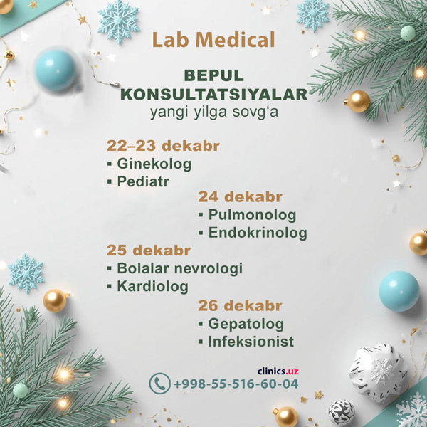 YANGI YILGA SOVGʻA — LAB MEDICAL klinikasida SHIFOKORLARNING BEPUL KONSULTATSIYALARI!